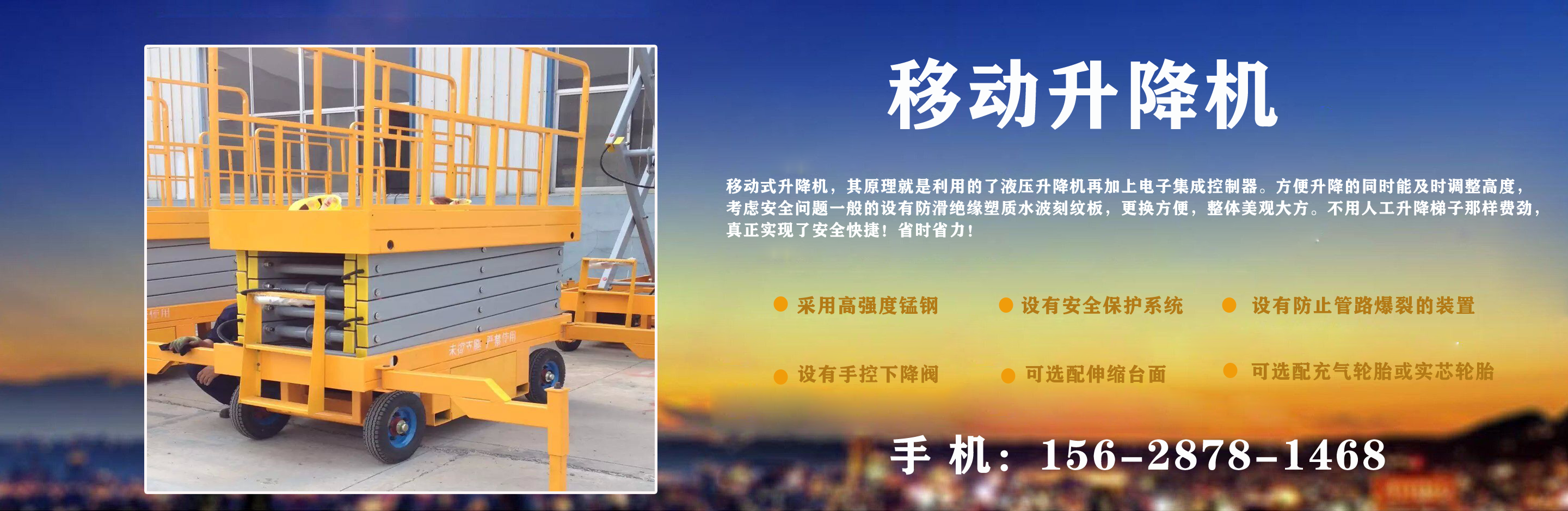 濟南中升機械制造有限公司主營移動升降機,小型移動升降機,移動式升降機,移動剪叉升降機,移動剪叉式升降機等產品,信譽良好,歡迎前來咨詢訂購!  在銷售上,尊重每一個客戶,做到保質、保量及時供貨;在售后服務上,以較短的時間,用較快的速度解決,終身追蹤服務。  公司始終以“品質為本,服務至上”為公司宗旨。致力于提供高品質的產品,完善的服務,快捷的供貨,無論您身處何方,都能感受到我們的優良服務。客戶至上,誠信為本。  歡迎各界朋友來電,來函垂詢,選購!...